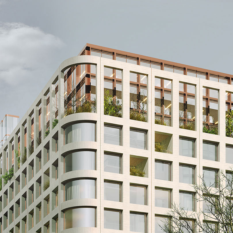 The façade is defined by a rhythmic series of slender, rounded arches at the ground level, which open the building to the street and create an inviting to public. Above this base, the arch motif evolves into a precise, grid-like system of square windows and curved corner glazing, that gives the building its sense of scale and permanence. With clean lines and integrated green terraces, the project honors the site’s architectural heritage while creating a transparent, future-oriented landmark for Tbilisi’s urban fabric.